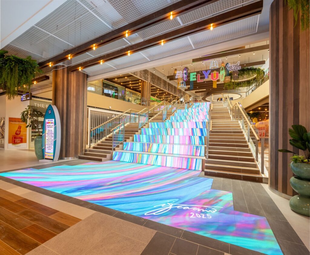 The sculpture’s organic form mirrors the mall’s design language—flowing, colorful, and inspired by the sea.