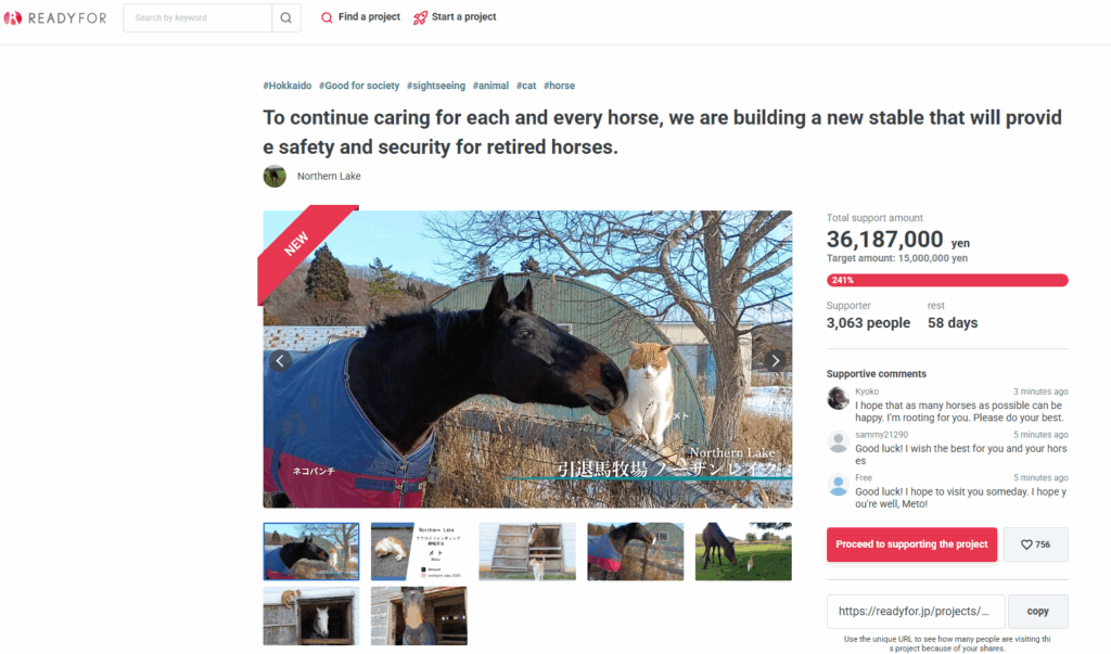 Northern Lake Farm, nestled in Hokkaido’s Niikappu town, launched a crowdfunding campaign on the Japanese platform Readyfor to construct a new stable facility. The aging infrastructure of their current stables had become a growing concern for the welfare of the retired racehorses under their care. The campaign’s goal was to raise funds that would allow these champion horses—who had given everything on the track—to live out their golden years in safety and comfort.