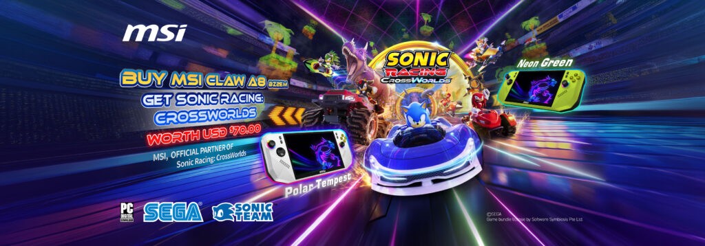 MSI and SEGA have teamed up to bring something exciting for both handheld gamers and Sonic fans. Starting September 26, 2025, anyone who picks up a qualifying MSI Claw A8 handheld can redeem a free digital copy of Sonic Racing: CrossWorlds for PC.