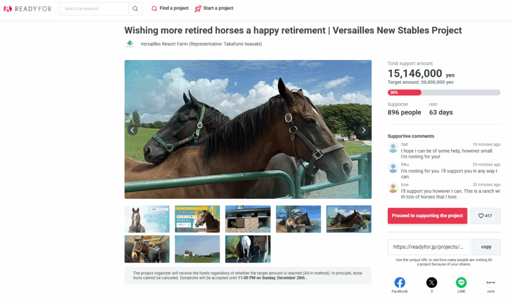 As of mid-October 2025, the Versailles Resort Farm campaign had raised approximately 8.3 million yen (about 16% of their goal) from 371 supporters. Construction has already begun, with support pillars for the new stable being erected—visible progress that demonstrates the farm’s commitment to transparent use of funds.